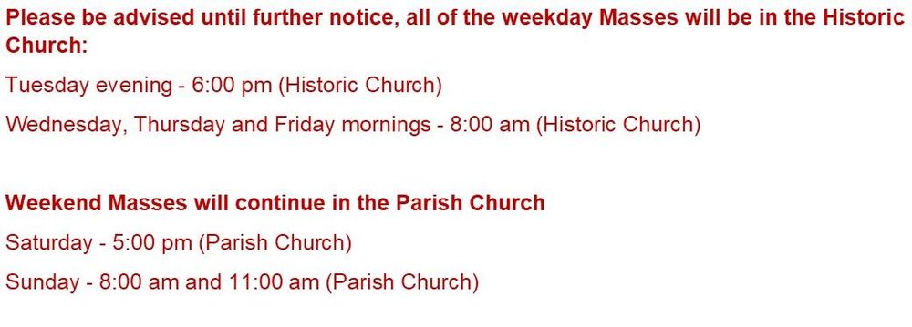 Daily Mass Times in the Historic Church