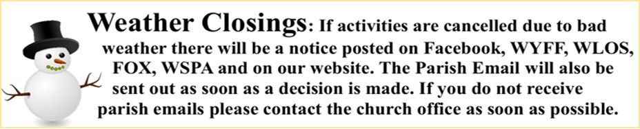 Call the Parish Office (864) 582-0674 for the entrance code.